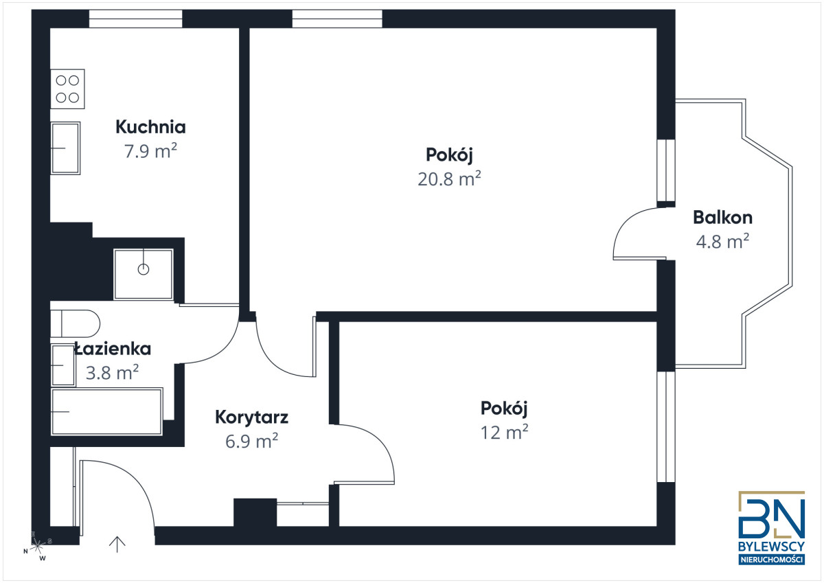 – dwa niezależne, ustawne pokoje oraz osobna, jasna kuchnia